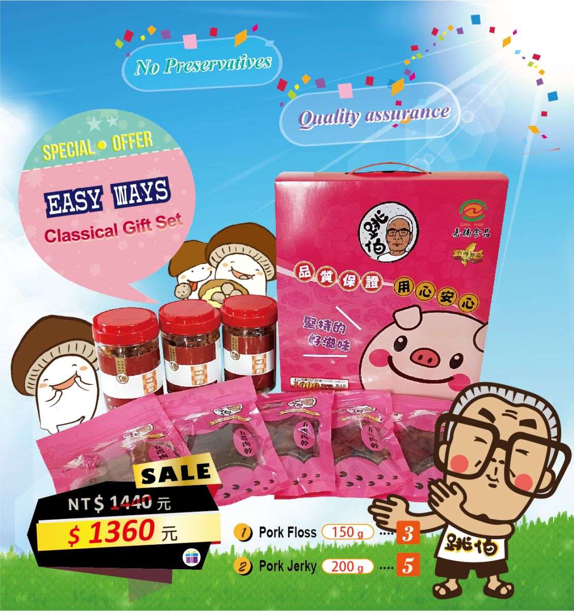 1.Pork floss (150g) * 3 pack2.Pork Jerky(200g) * 5 pack -